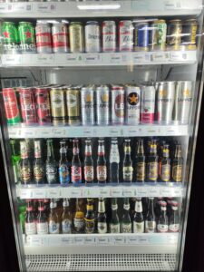 屋台でもスーパーでも、缶ビールが常備されており、暑い日には氷を入れて飲むのが定番スタイルです。