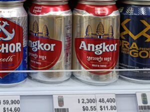カンボジアでは自国ブランドに加え、近隣国の東南アジアビールも多く流通しています👇