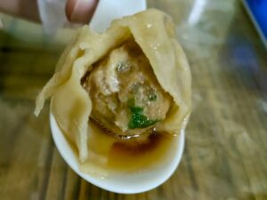 蒸したてで提供されるため、まずはレンゲに乗せて皮を割り、