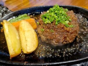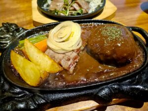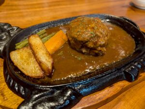 ジューシーで日本人の口にもよく合う味付けのハンバーグ。