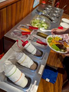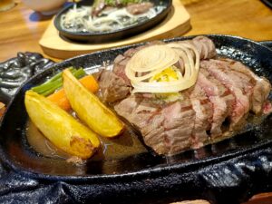 ステーキやハンバーグが一桁ドル台から楽しめるうえに、次の内容がセットになっています。