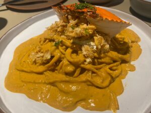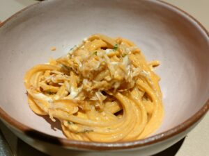 Crab Tomato Cream Spaghetti(カニのトマトクリームパスタ)。