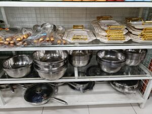 金属製のボウルや調理器具も多く、自炊派や飲食関係者にも重宝されるラインナップです。