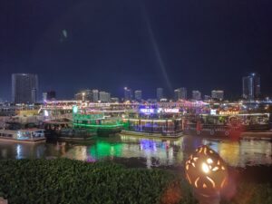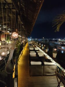 トンレサップ川・メコン川沿いの夜景を楽しみながら食事ができる、