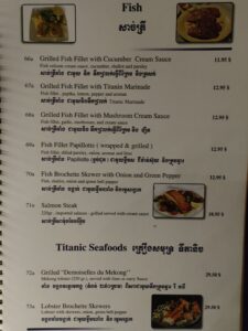 プノンペンの川沿いエリアに位置するタイタニックレストラン(ភោជនីយដ្ឋានទីតានិច) は、