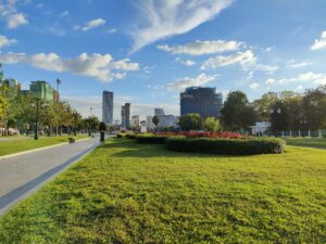 朝は清々しい空気の中、ジョギングやストレッチをする地元の人たちで賑わい、屋台コーヒーやバゲットサンドを販売する移動屋台も登場します。