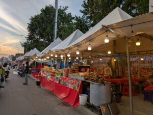 - 夜になると、音楽とともに軽食屋台が並び、観光客も地元の人も一緒にお祭り気分。